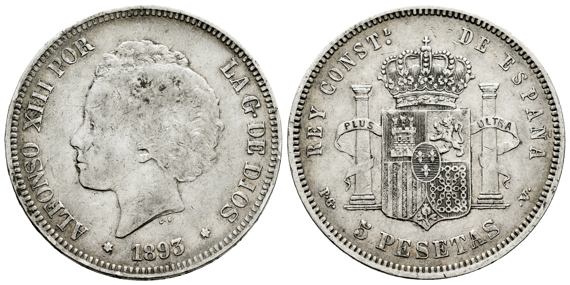 ALFONSO XIII 5 PESETAS 1893 PGV