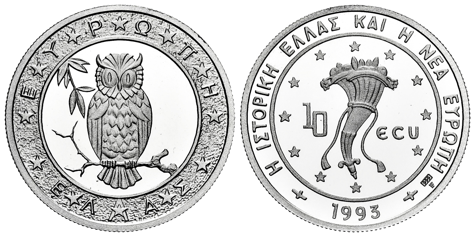 GRECIA 10 ECUS (PIEDFORT) 1993 BUHO ATENIENSE