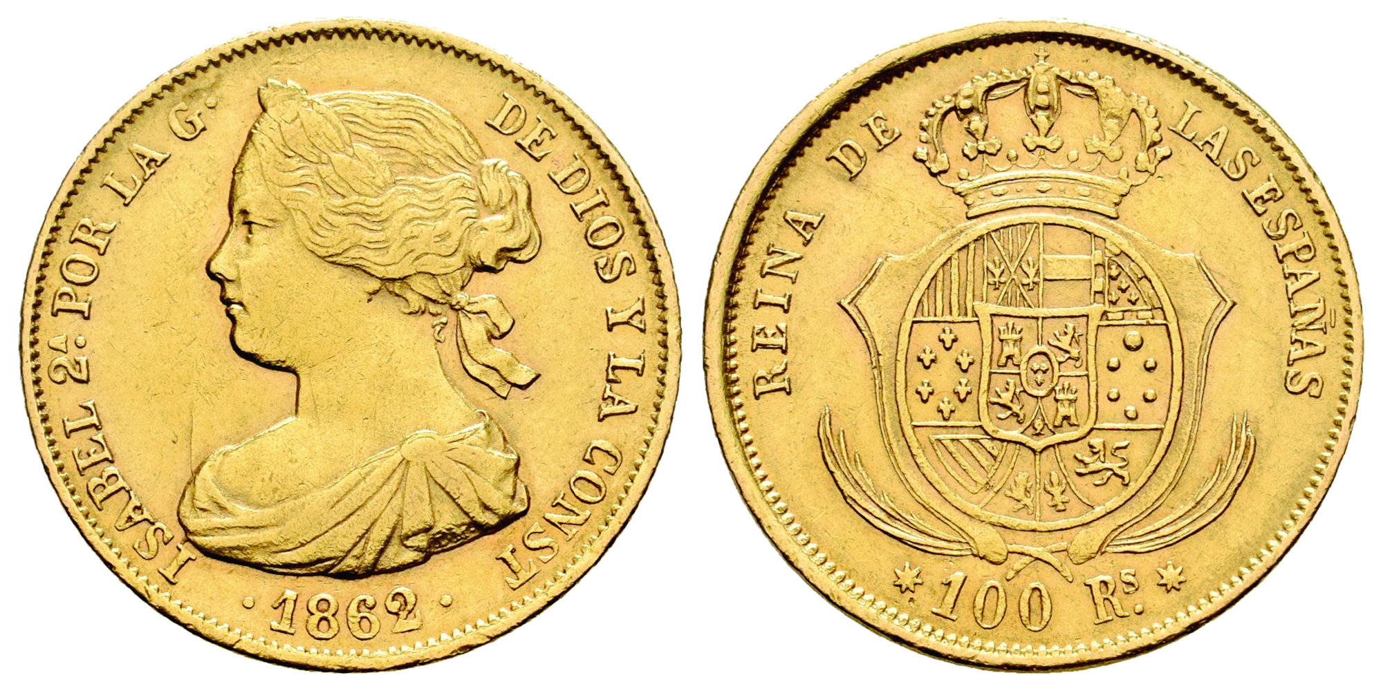 ISABEL II 100 REALES 1862 SEVILLA