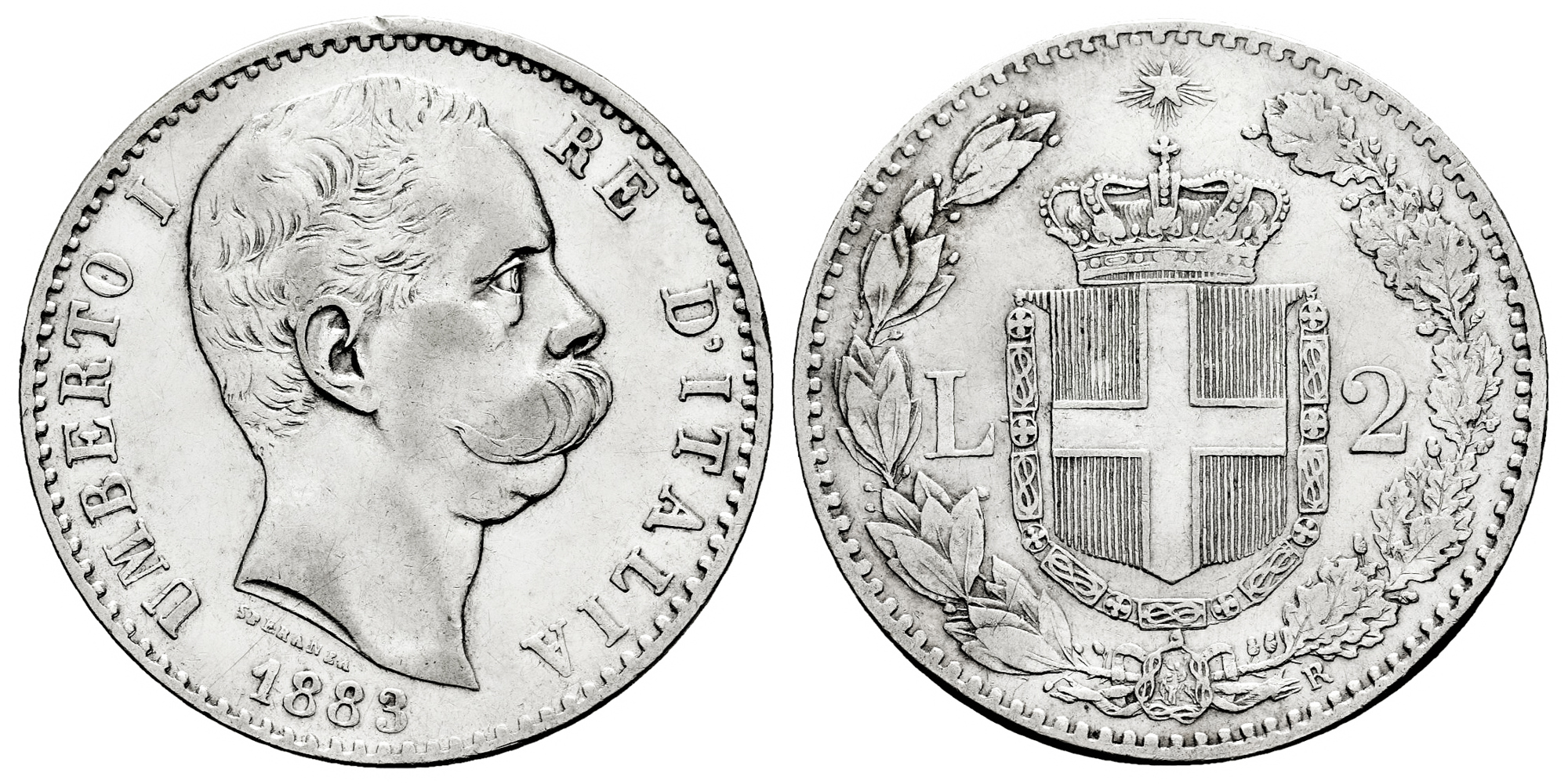 ITALIA 2 LIRAS 1883 R UMBERTO I