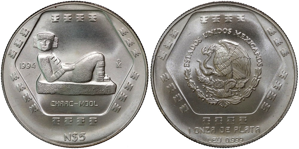 MEXICO 5 NUEVOS PESOS 1994 CHAAC-MOOL
